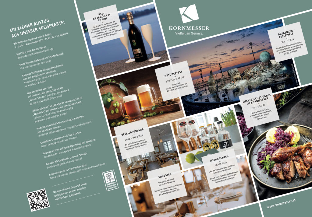 Gutscheine für alle Köstlichkeiten im Gasthaus Kornmesser oder sorgfältig zusammengestellte Geschenkspakete für Gin- oder Weinliebhaber.